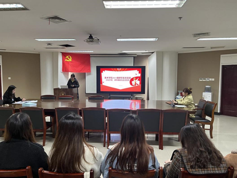2022年3月22日中午,美术学院2021级研究生支部在美术学院五楼会议室召开了预备党员转正会议,讨论关于方莹、谭作萌同志申请转为正式党员的问题。出席会议的有研究生辅导员孙宇老师、支部内全体党员。会议由支部书记罗淳主持。