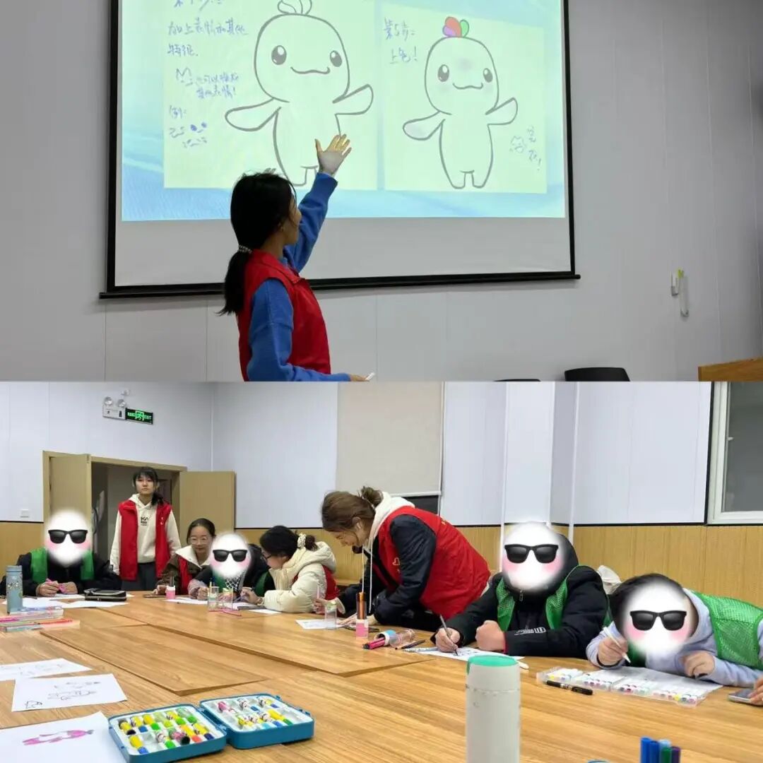 活动尚未开始,志愿者们已早早到来。他们轻手轻脚地布置场地,摆放画笔、调匀颜料、张贴吉祥物图像……每一个细节都透出默默的珍重。教室里渐渐被温馨的氛围填满,仿佛连空气都在等待,等待一场关于创造与陪伴的盛宴。