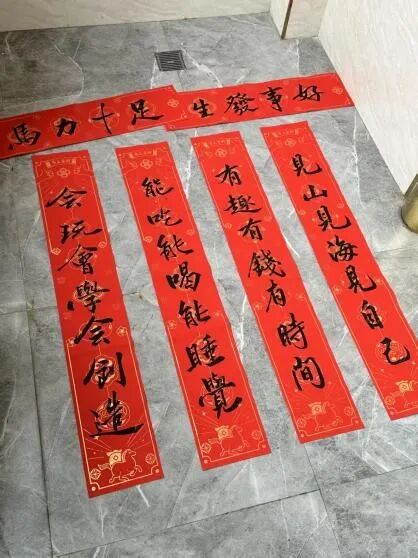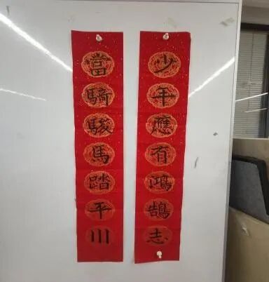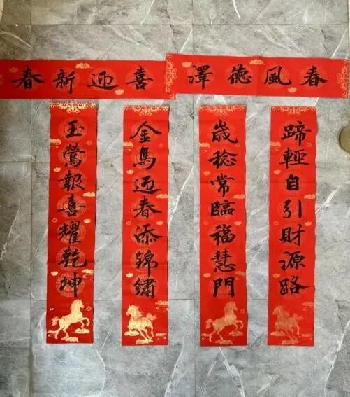 “千门万户曈曈日,总把新桃换旧符。”贴春联是传承千载的华夏年俗,朱红笺纸承载着对新岁的期许。同学们各展才情,挥毫写下多副马年新春联:“骐骥腾云开晓日,春风送暖入华堂”,骐骥奋蹄破雾,携晓日引领前行,春风送暖入宅,团圆温馨满堂;“金马迎春财运旺,平安喜乐福满堂”,金马欢歌踏春,引八方财运汇聚,以矫健之姿宣告新岁好运;“家和业旺迎新岁,人寿年丰庆马年”,愿家家户户家庭和睦、事业兴旺,共庆马年祥和顺遂、人寿年丰。