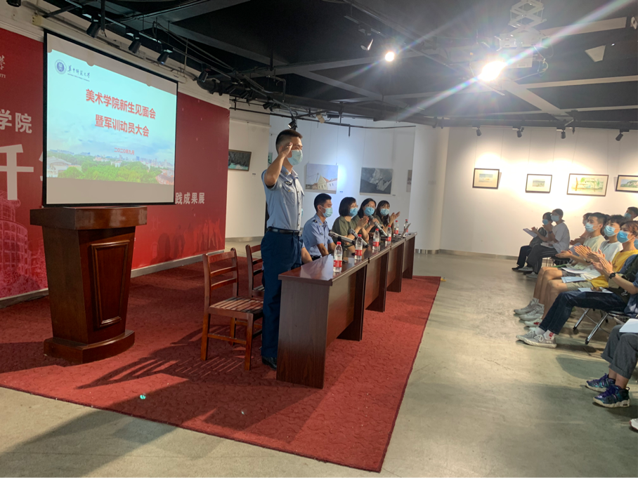 9月13日下午,华中师范大学美术学院2020级学生军训动员大会在美院八楼召开。党委副书记李宪玲、新生辅导员王璐、汤益迦、17连教官出席动员会。