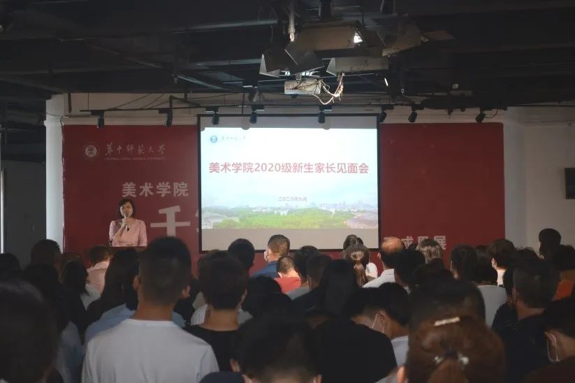 9月12日下午,华中师范大学美术学院2020级新生家长见面会在美院八楼召开。美术学院党委书记付义朝、美术学院副院长王文新、副院长陈晓娟、美术史论教研室系主任娄宇、环境艺术设计工作室主任魏勇、中国画工作室主任蔡敏、铜版画工作室主任陈曦、视觉传达工作室主任庄黎、新生辅导员王璐、汤益迦出席活动,与174名新生和家长就开学与未来规划等话题展开交流。见面会由美术学院党委副书记李宪玲主持。