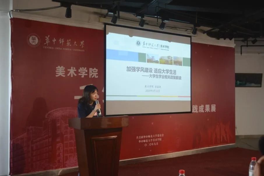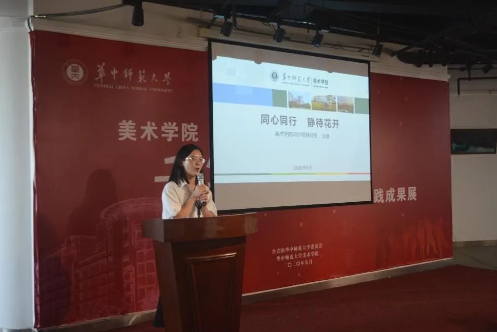 美术学院副院长王文新和陈晓娟首先对学院整体情况和教学情况进行介绍。王文新副院长表示,华中师范大学美术学院现在有5个本科专业,美术教育专业、绘画专业、视觉传达设计专业,环境设计专业和数字媒体艺术专业,教职工180人,其中教授19人,获得省级名师5人,获得全国教育硕士优秀教师1人,学院将会为2020级新生配备优秀的师资力量,也会给同学们提供更加广阔的平台。副院长陈晓娟表示,美院的师生作品都有参加国内外的展览并获奖,彰显了学院的综合实力。关于人才培养方案,美院的培养特色是强调实践与理论相结合,要把真正的创作与相关的社会实践相结合。由于同学们在学校里面学习的知识还是有限的,所以美院学子走出校园走向不同的地区进行写生,进行社会实践,并进行国际交流。她还表示,华中师范大学的校训是求实创新,立德树人,她希望一位同学能够记住这8个字,时刻共勉。