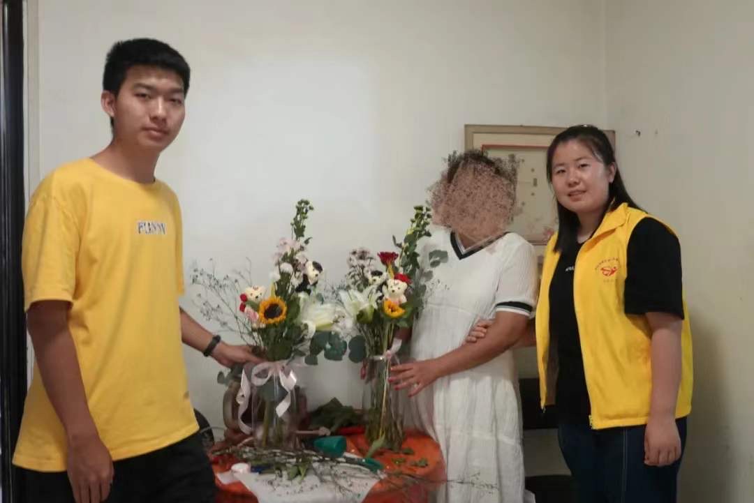按照安排,第二节课上“七夕有你”插花课堂。从内向外,夏乐鑫在花瓶中留下了自己心中春天的景色,稚幼的插花技巧下依稀可见花朵环绕、锦绣云集。插花课游坤老师以附近景点洪湖为创作插花背景——绿莹莹的银叶菊围绕在四周,绚烂的玫瑰、百合也逐渐显露,靠后的位置还有一朵向日葵相映衬。一旁的王荣福老师借此题上了朱熹《春日》中“等闲识得东风面,万紫千红总是春”的名句。最后,以“七夕有你”为主题的夏乐鑫阿姨在各位老师的陪同下,圆满地完成了全部内容,为这五彩斑斓的画卷完美收尾。