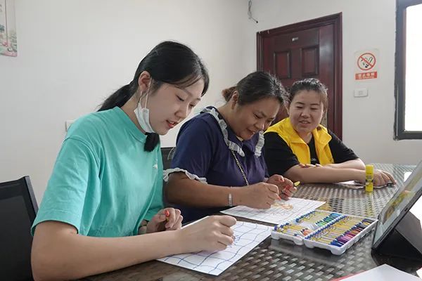 (学生夏乐鑫阿姨在制作自己的彩笔画)