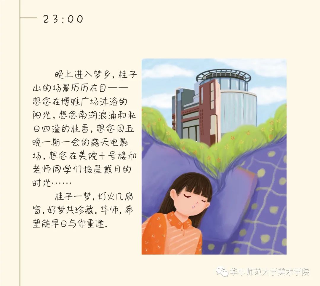 晚上进入梦乡,桂子山的场景历历在目——想念在博雅广场沐浴的阳光,想念南湖浪涌和秋日四溢的桂香,想念周五晚一期一会的露天电影场,想念在美院十号楼和老师同学们披星戴月的时光……