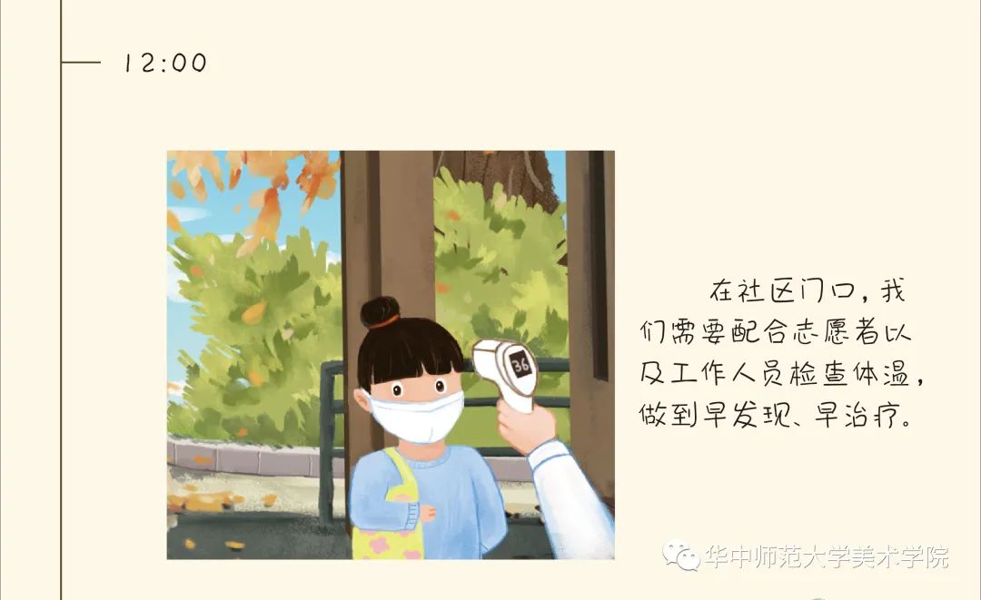 中午12:00,在社区门口,我们需要配合志愿者以及工作人员检查体温。
