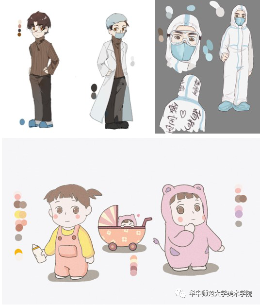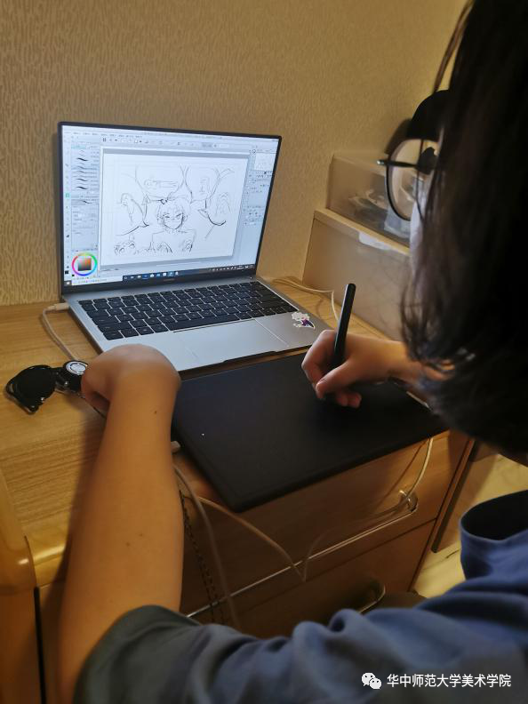队员们通过腾讯会议等线上交流方式进行关于绘制内容的具体商定,包括绘本内容板块的分工、线条色号的统一选择、储存格式统一等。即使是在线上隔着屏幕的讨论,也感受得到队员们的同心合力。在线上交流中,团队成员都提出了个性,有创意的想法,丰富了绘本内容和表现方法。结合自身疫情期间的亲身经历,成员对绘本都投入了深厚的情感。比如队员汪可瑜说到:“就像音乐系学子积极创作抗“疫”歌曲、护理专业学生录制“七步洗手法”视频等等一样,在家宅了这么多久,我也想用自己的行动为疫情做一份贡献,虽然是从一个小的“童心战疫”主题出发,但我和队员们可以发挥专业所长,为疫情做一点力所能及的事。很遗憾我没能做成社区防疫的志愿者,但好在可以用这种绘本的形式参与抗疫、宣传疫情防控知识,记录下全国人民共同抗疫的这个特殊时刻。”