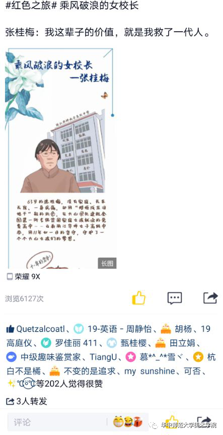 szkc红色记忆暑期社会实践进入第三周,实践队员于7月31日在素质课程相关宣传平台上发布了红色漫画系列第二章——“乘风破浪的女校长‘张桂梅’”,借助热点话题增强漫画的吸引力,提高普遍关注度使漫画收获了更多的阅览和好评。