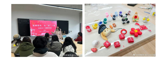 设计学2303班于期末开展了《“挺膺担当,与' 泥 '一起”》主题班会。活动期间同学们进行泥塑粘土创作,结合主题发挥想象力和创造力,制作出泥塑作品。同学们积极参与、热情高涨,班级氛围欢快,也展现了班级同学丰富的创意与合作的精神!