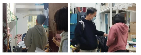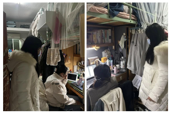 26日与27日,孙宇、田雨老师携研究生会干部走访三个年级宿舍,全面排查宿舍安全隐患。此次走访,老师与同学们就相关生活问题进行了积极交流,督促同学们要保持好宿舍卫生、保护好个人人身和财产安全,并再次强调了宿舍安全问题。