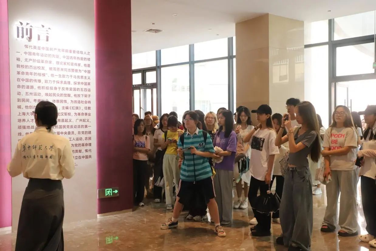 为深入推进爱国主义教育,传承红色基因,华中师范大学美术学院于5月21日组织团学骨干前往新大学生活动中心参观恽代英革命事迹展。本次观展邀请恽代英讲师团成员郭佳慧同学担任讲解,她以生动详实的史料和沉浸式讲述,带领同学们回望恽代英投身革命的峥嵘岁月。