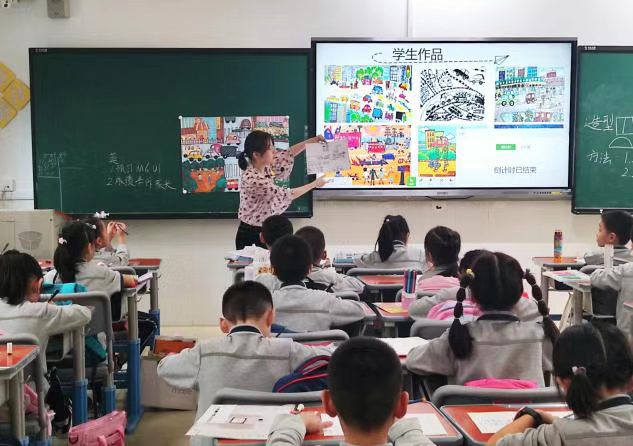 上午第四节课,余梦婷老师进行《繁忙的大街》汇报课。本节课以动画片段导入,教师从大街(马路)的形状、车辆的形状、如何摆放组合三方面逐步开展,让学生借用简单的图形表达出“复杂”而繁忙的大街。整节课氛围良好,顺利完成。课后厦门五中的指导老师们指出以下改进要点:课堂节奏过快,应多停顿一下,让学生有思考的空间;知识点可以再丰富些,拉开层次梯度;教师用语可以再精炼规范些……华中师范大学的老师们也给予了余老师很大的鼓励,表示余老师课堂非常活跃。