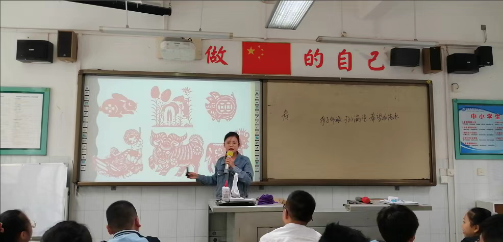 11月11日,实习老师梁劲蝶在初二(5)班的汇报课《中国民间美术》拉开了此次美术组实习生汇报课的帷幕。首先,她通过图片导入引出民间美术的定义,激发学生兴趣。她注重启发引导学生,让学生自己去观察并总结出民间美术包含的内容,发现其中的小细节,让同学们发表了自己的感受,培养了学生的自主探究能力。课后,美术组老师们进行了相应的评课,从课堂的掌控能力等方面进行了深入的探究。南宁市第十四中学美术组黄思林老师提到:课程完成度很高,课程进度控制得很好,注重与学生的互动。华中师范大学美术学院杨老师提到:课堂互动性很好,有带入感。但讲课要注意语调的起伏。吕枫韵老师提出:设计步骤可以更加清晰,内容量可以适当增加。