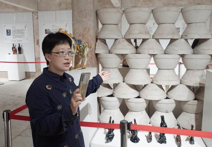 杨杨老师给同学们讲用见证工艺陶瓷厂辉煌历史的“模范”创新设计的屏风墙