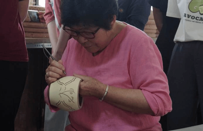 肖春娇老师为同学们师范湖北土陶特有的雕花技艺
