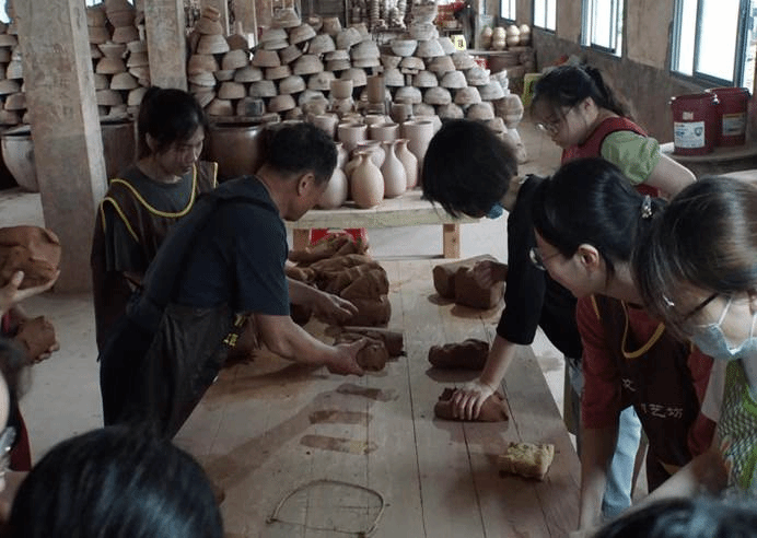6月5日上午,由华中师范大学美术学院杨杨老师主讲的“湖北民间美术和手工制作”社会实践同时选修课程,在蕲春县管窑镇管窑老窑址所在的岚头矶工艺陶器厂内展开了2022春第4次社会实践教学活动。管窑老窑址是湖北三大名窑——汉川马口镇马口窑、蕲春管窑、麻城蔡家山窑中,唯一既有老窑口又有老窑工,老窑口还继续在烧窑的地方。蕲春管窑镇也是第一个与华中师范大学美术学院签订社会实践合作教学的挂牌单位,率先实现教育部关于社会实践课程“配备理论指导教师、具有稳定的实践基地等条件”的要求。