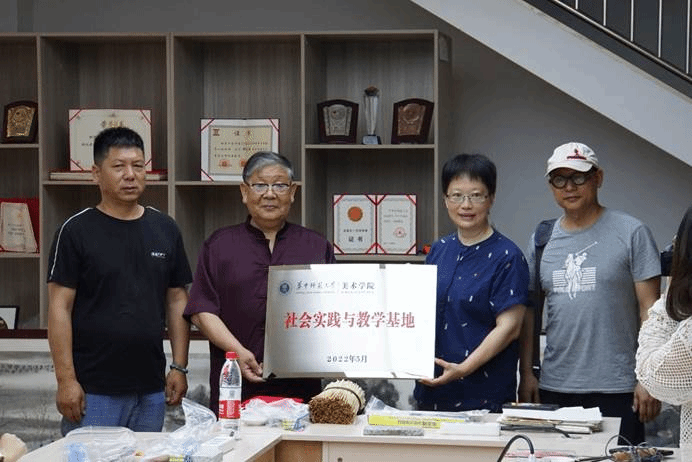 当日下午,华中师范大学美术学院与邓氏麦秆画传承中心共建社会实践基地揭牌仪式正式举行,在全体老师同学们的见证下,实践基地正式成立。随后,杨杨老师代表学院向邓友谱老师、邓小军老师授予华中师范大学“社会实践基地教师聘书”。