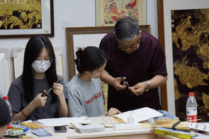 邓友谱老师亲自指导学生进行麦秆画实践操作