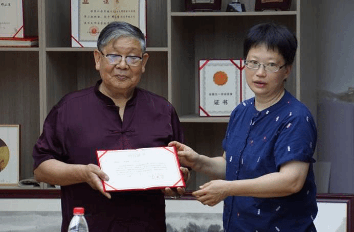 “湖北民间美术与手工制作”课程负责人杨杨老师代表美术学院为邓友谱老师颁发“社会实践基地教师聘书”