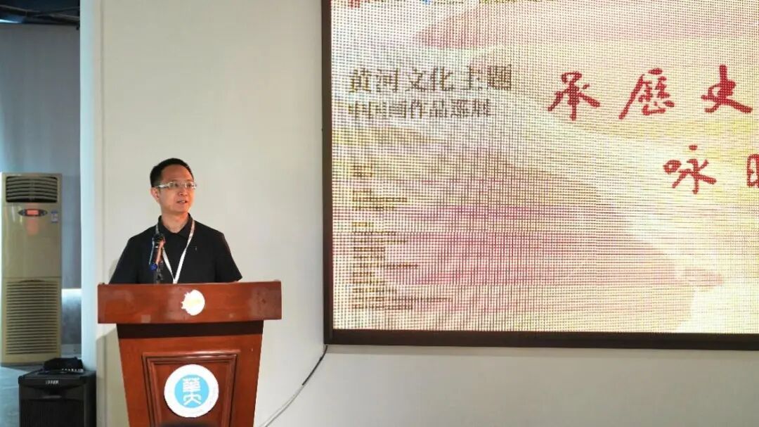 参展艺术家代表、周口师范学院美术学院副教授曹涵在发言中表达了对国家艺术基金、河南大学与华中师范大学的诚挚感谢。他谈到,作为青年艺术工作者,通过参与项目深刻理解到艺术创作必须扎根于深厚的文化土壤。黄河文化如同中华文明的“基因库”与艺术成长的“孵化器”,引领青年艺术家在传承与创新中淬炼成长。他表示,新时代的青年艺术家应牢记教诲,心怀感恩,用作品构筑黄河文化的精神堤坝,为传承中华优秀传统文化贡献青春力量。