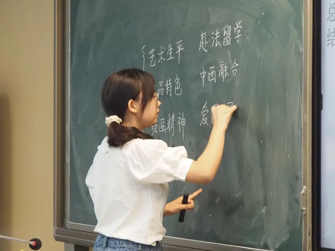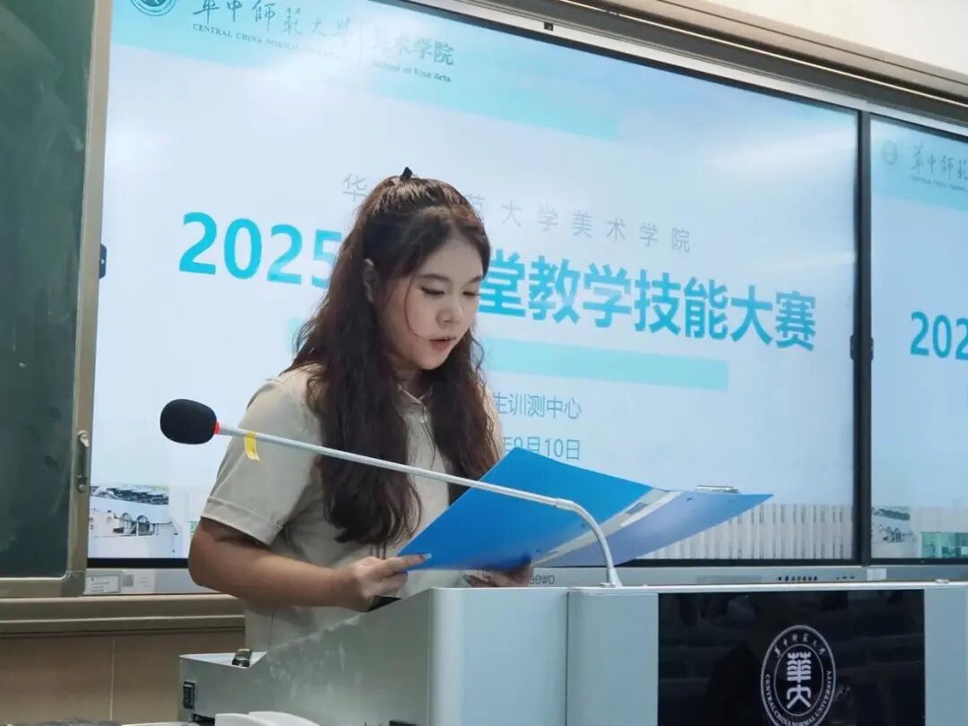 为进一步助力师范生成长,引导他们立足学科理论与教学原理,深入钻研课堂设计,9月10日下午,美术学院“第十八届师范生技能大赛”课堂教学技能比赛于8号楼8202教室顺利举行。本次活动以“笔墨深耕,课堂生花”为主题,邀请杨峰、宋磊、刘晓文三位老师担任评委,为选手提供专业指导。活动由师范生训测中心陈晔同学主持。