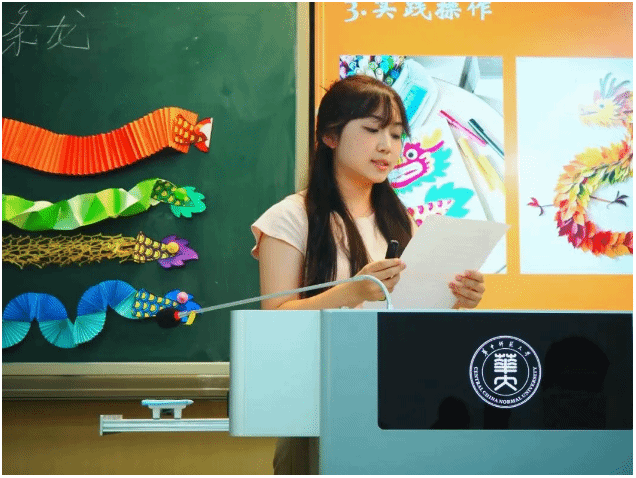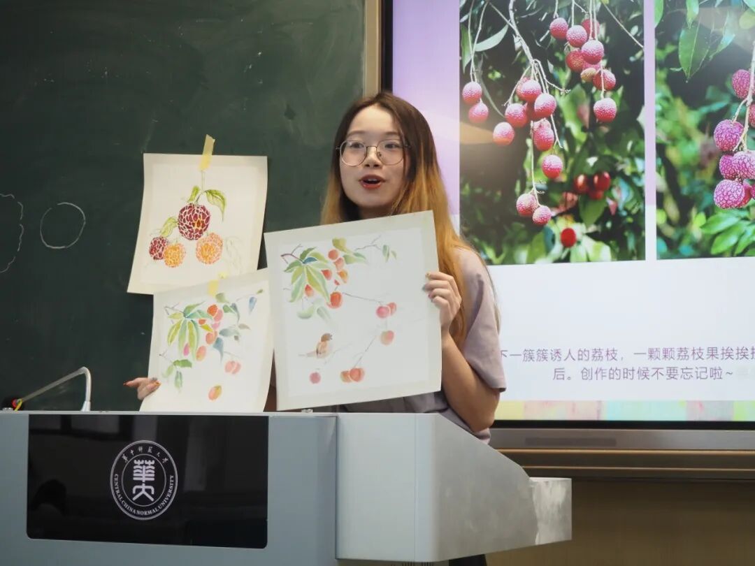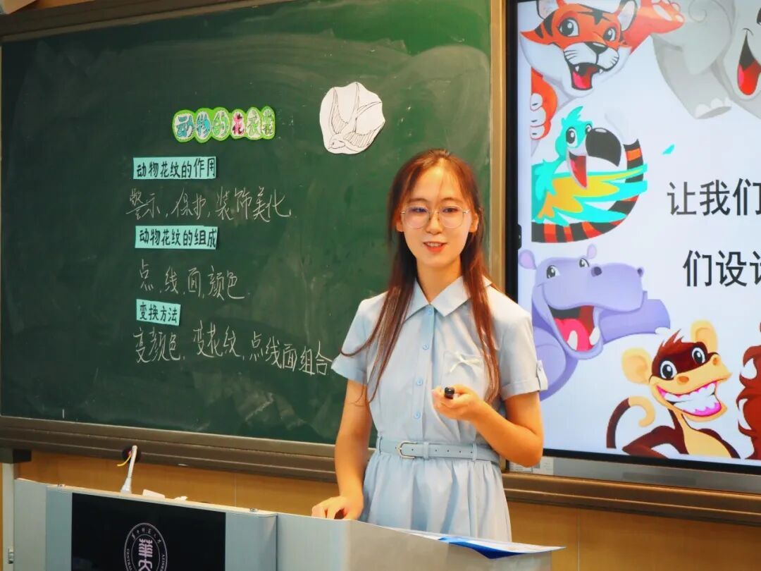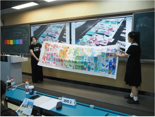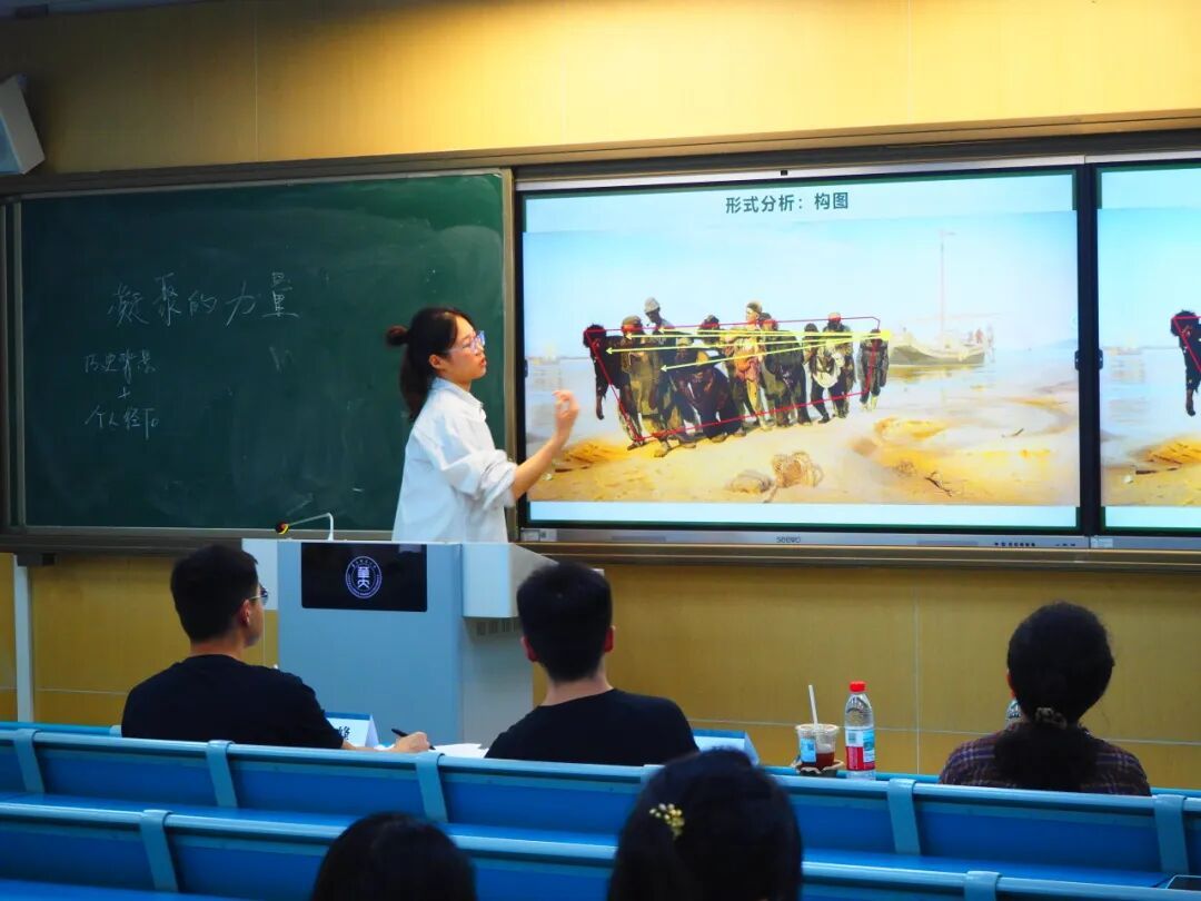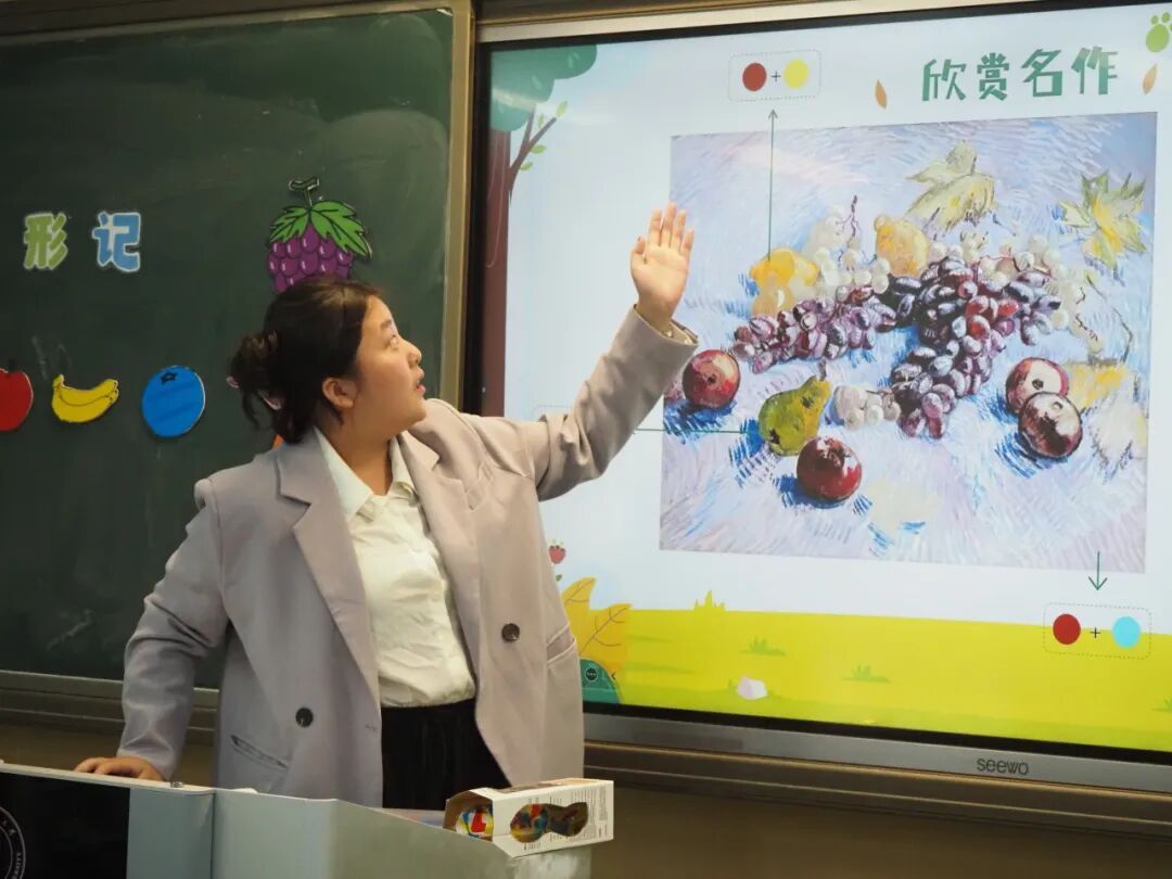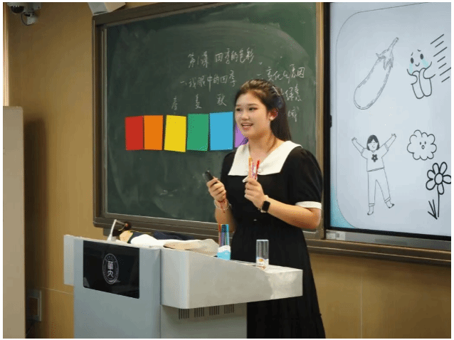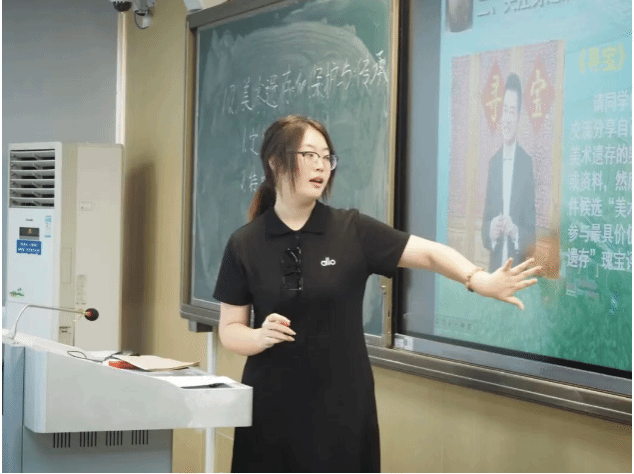 赖莉雅同学以《四季的色彩》为课题,从自然中的色彩引入,进一步启发同学们对色彩的认识;陈晔同学以《古代青铜器艺术》为引,通过新颖的动画人物和精美的PPT展示,诠释了三星堆青铜器之美,传承中华优秀传统文化。