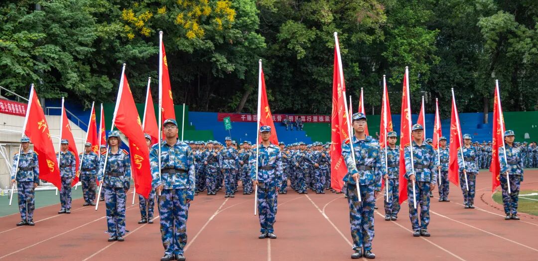 ▲迷彩点兵,桂子山前磨剑气 美术学院2025级新生学子军训汇演彩排