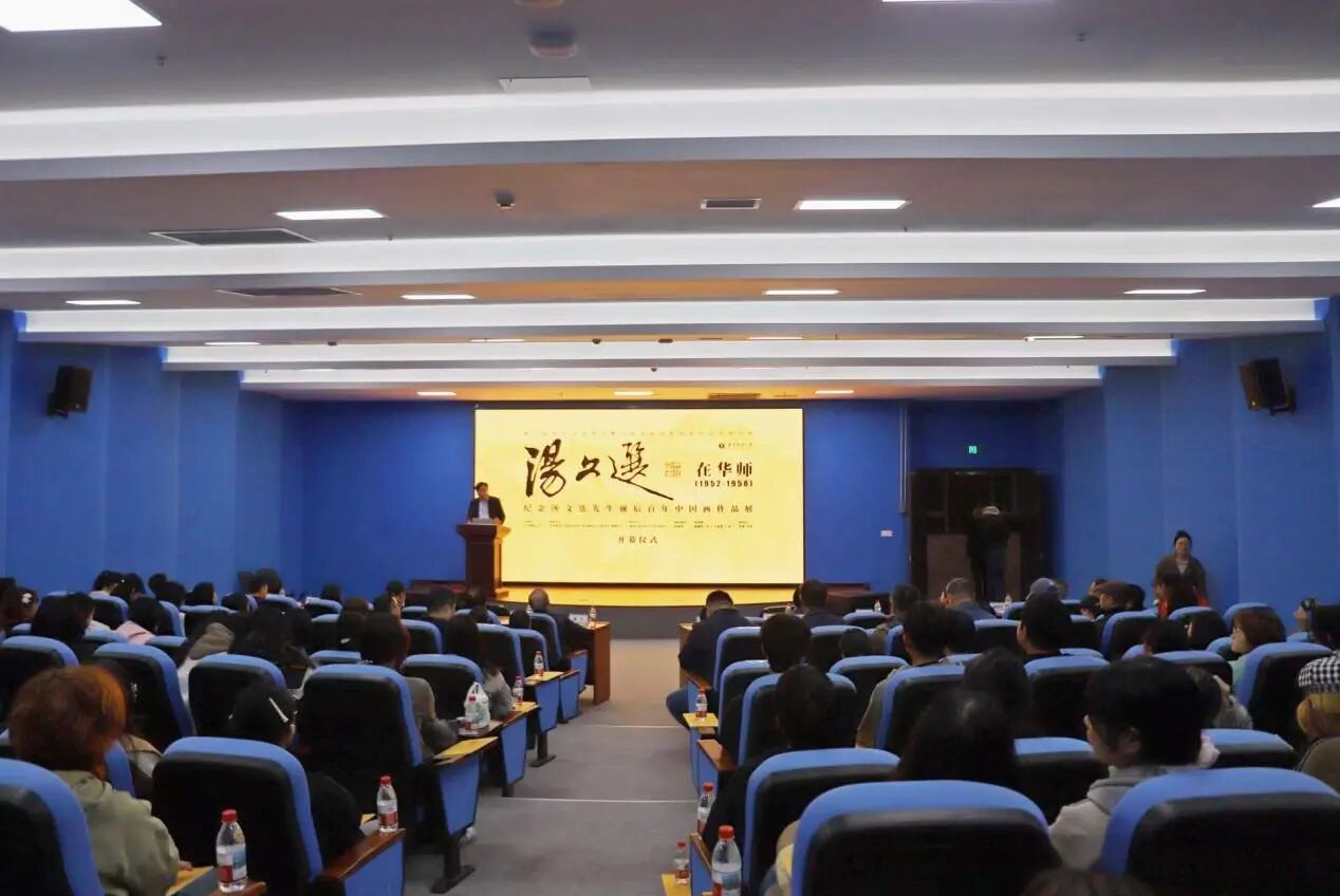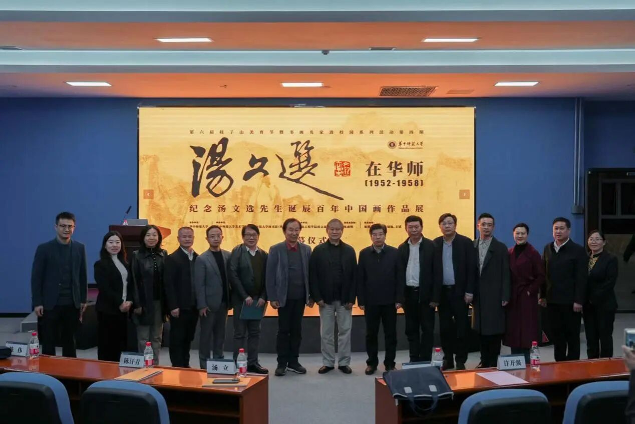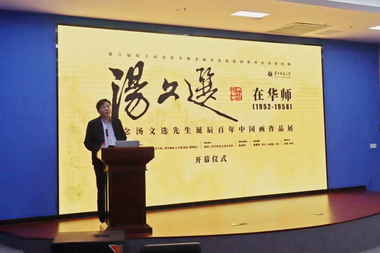 2025年10月21日晚,“汤文选在华师(1952-1958)——纪念汤文选先生诞辰百年中国画作品展”在华中师范大学博物馆四楼报告厅隆重开幕。本次展览由华中师范大学主办,华中师范大学美术学院与华中师范大学图书馆(博物馆)承办,湖北工程学院汤文选美术馆协办。