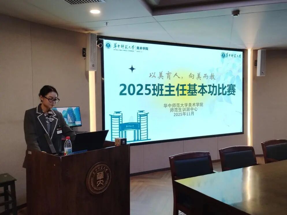为提高师范生的教学实践能力与班级管理水平,增强师范生培养班主任技能的意识并推动日常训练,提升其班主任基本技能水准,11月7日下午6时30分,美术学院“第十八届师范生技能大赛”班主任基本功比赛于美术学院五楼会议室顺利举办。本次活动以“以美育人,向美而教”为主题,特邀黄儒昊、牛一帆、王建衡三位老师担任评委,为参赛选手提供教学指导。活动由师范生训测中心的李童谣同学主持。