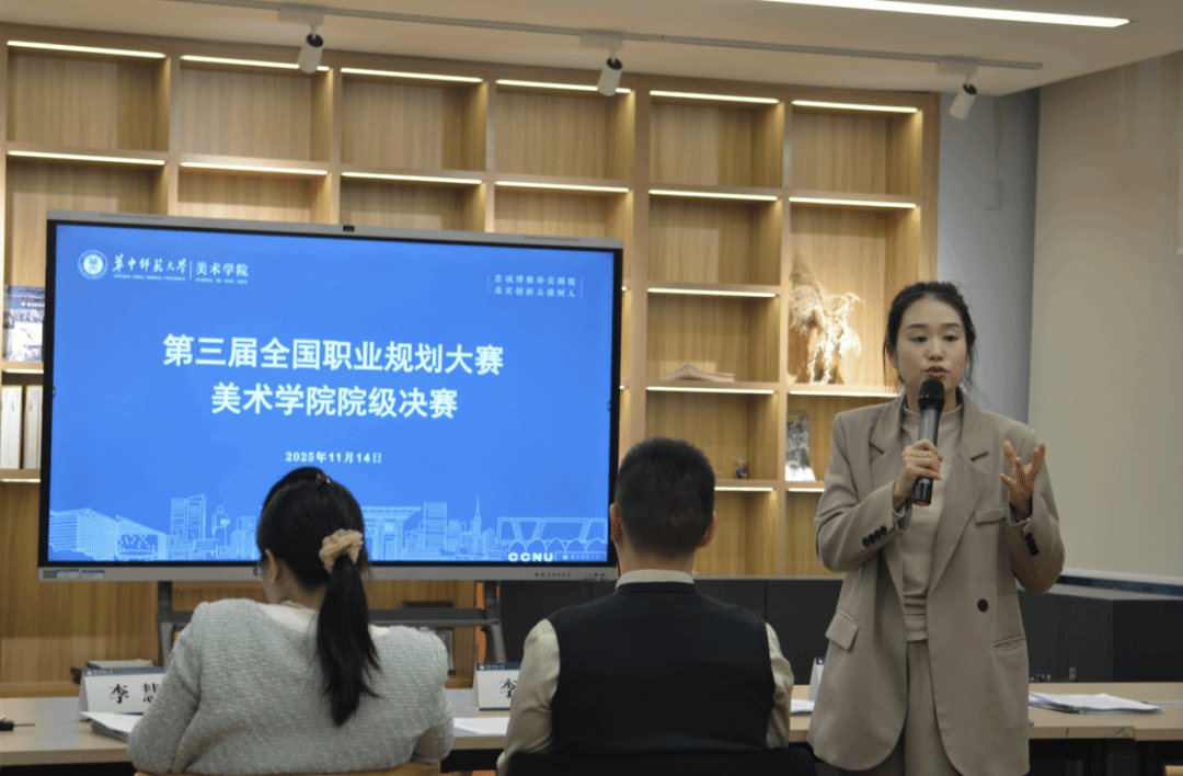 为贯彻落实党中央、国务院关于高校毕业生就业工作的决策部署,进一步强化大学生职业规划意识,提升就业竞争力,实现“以赛促练、以赛提能”的目标,11月14日下午,美术学院“筑梦青春志在四方,规划启航职引未来”第三届全国大学生职业规划大赛院级决赛在209报告厅顺利举行。华中师范大学就业指导与服务中心副主任李慧、智联招聘两湖区域校园渠道经理李倩担任评委,美术学院各年级辅导员出席。比赛由2025级研究生张晓琳主持。