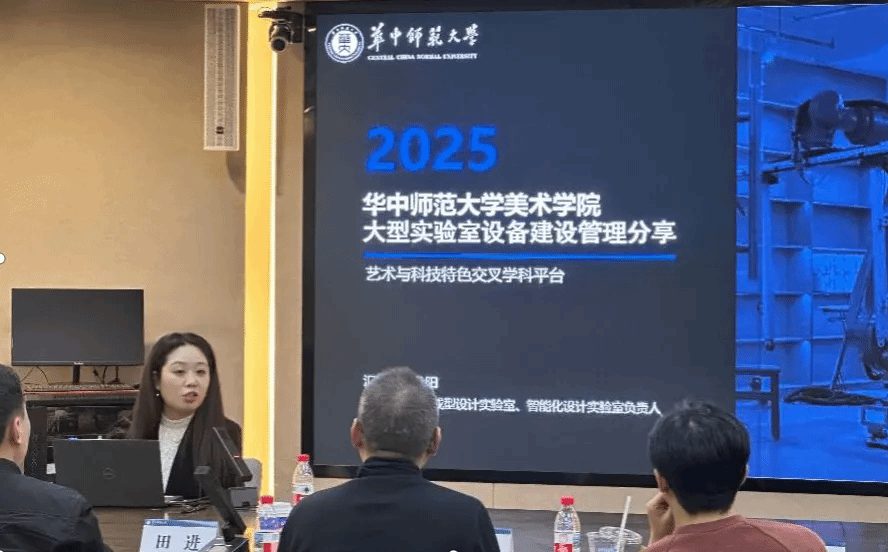 会议由华中师范大学美术学院院长郑达、副院长庄黎共同主持。中国美术学院跨媒体艺术学院副院长高世强带领教师代表吴穹、朱熹、田进等,与华中师范大学美术学院师生代表围绕实验室建设现状及共同挑战,展开深入交流。