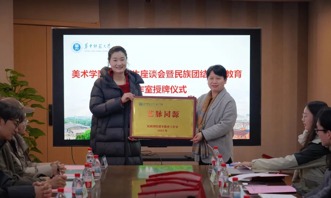 为深入贯彻落实习近平总书记关于加强和改进民族工作的重要思想,铸牢中华民族共同体意识,凝聚育人合力,12 月 31 日上午,华中师范大学美术学院在 5 楼会议室召开民族学生交流座谈会暨 “艺脉同源” 工作室挂牌仪式。