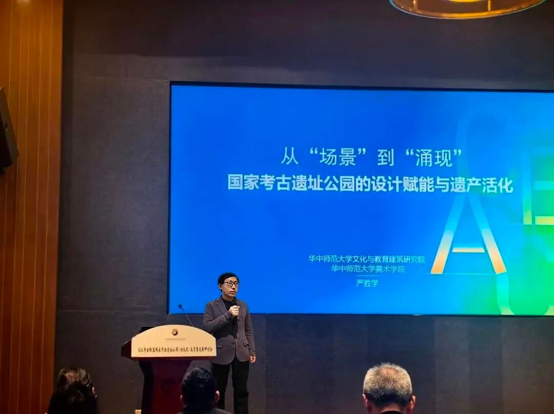 3月21日,长江考古联盟国家考古遗址公园(湖北段)高质量发展研讨会在荆门市屈家岭国家考古遗址公园召开。美术学院严胜学教授应邀出席,并作主题报告《从“场景”到“涌现”:国家考古遗址公园的设计赋能与遗产活化》,分享了其团队在文化遗产保护活化以及文化遗产数字化领域的若干思考与实践探索。