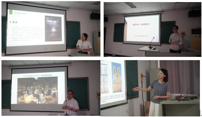 为充分确保评选结果的公正与公平,学院特邀学校教学督导员骆启桂、夏玉珍教授及校工会副主席郭春娥等专家,以及美术学院尹继鸣、娄宇、邱玲、王余、易阳、高细媛等老师前来担任评委。评委组从教学设计和课堂教学等方面对参赛教师进行考核,针对其教学内容、教学组织、语态与教态、教学效果等四个内容逐一点评,给出了宝贵的意见和建议。竞赛现场氛围热烈,青年教师各自拿出看家本领,就自己的专业领域向评委展示了优秀的教学风采。艾欢老师生动地讲解了《界面与交互》一课,从交互设计的定义和交互系统的理论构架等方面引导学生认识交互设计,了解交互设计理论土壤、视觉设计层面交互设计的特点等,并以大家所熟悉的建筑和生活经历举例,带领学生进行探究性学习。蒲阳老师就《建筑构造》课程“大师名作分析”这一章节进行讲授,介绍了如何运用设计分析方法从空间视角对大师经典建筑设计作品进行解析。肖笛老师以《马奈的无奈》一课参赛,结合马奈这一伟大艺术家的生活经历,讲述了他的艺术在19世纪法国官方沙龙与印象派之间的挣扎与无奈。