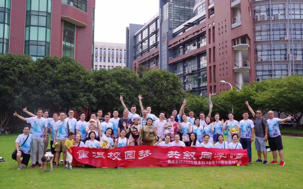 2019年8月10日,美术学院2005级校友重返学校举办毕业十周年纪念活动。毕业十周年,相聚一堂,重温校园时光,共叙同学情谊。本次十周年纪念活动包括师生座谈、聚餐祝福、篮球友谊赛以及合影留恋。