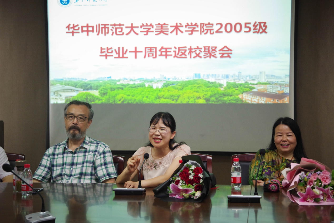 原美术学院党委副书记易吉林祝贺校友在这10年来取得的良好成绩,祝愿校友们能保持快乐积极的生活态度,并勉励校友们选择正确的人生道路为之努力。