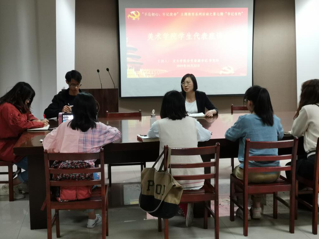 首先,美术学院分党委副书记李宪玲对学院目前学生工作做出分析与总结,她强调,“本次学生代表座谈会是我院‘不忘初心,牢记使命’主题教育系列活动的一个重要内容和重要环节,希望各位学生能够站在学院发展的角度,根据同学们反映的情况提出宝贵的意见和建议。”