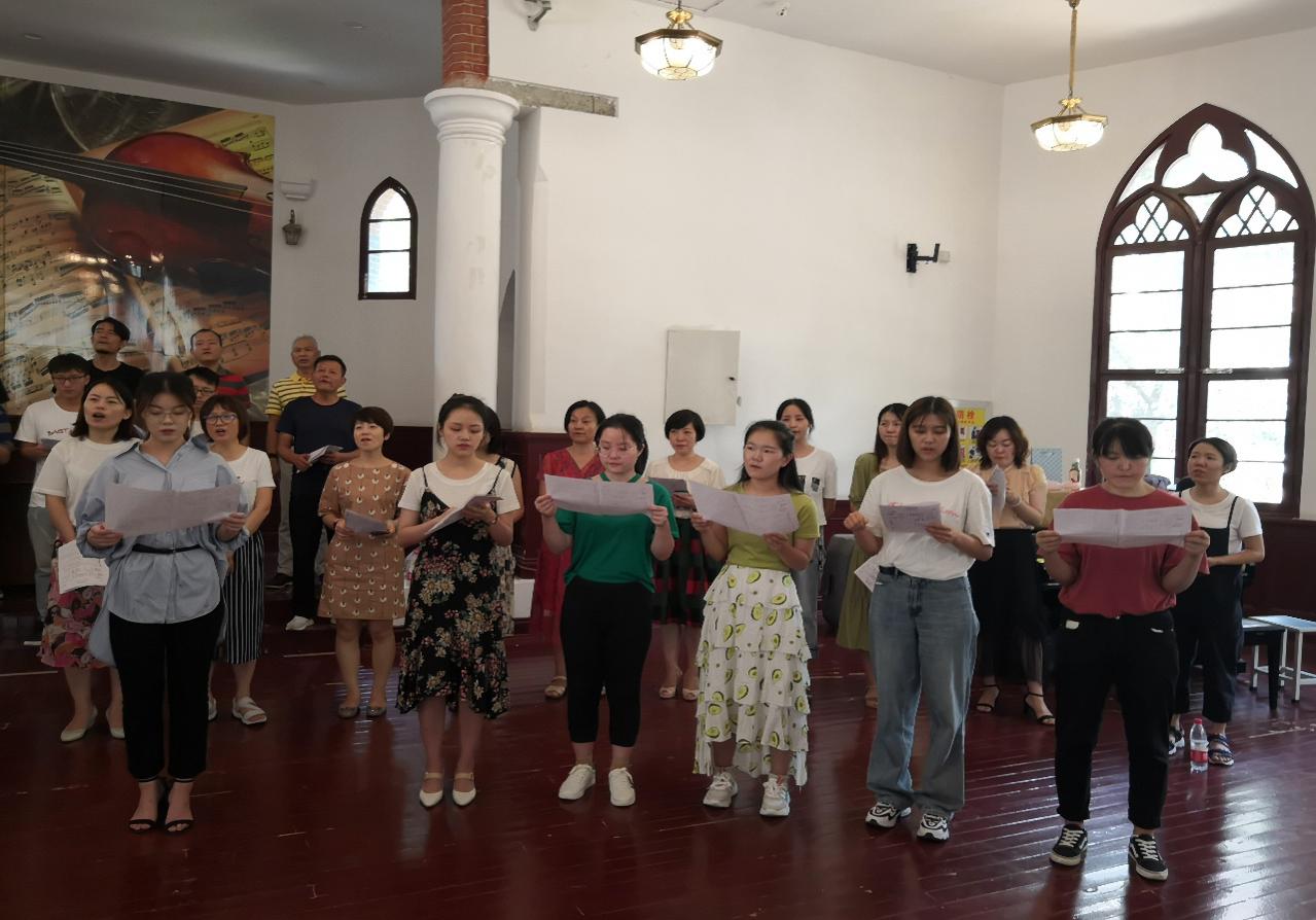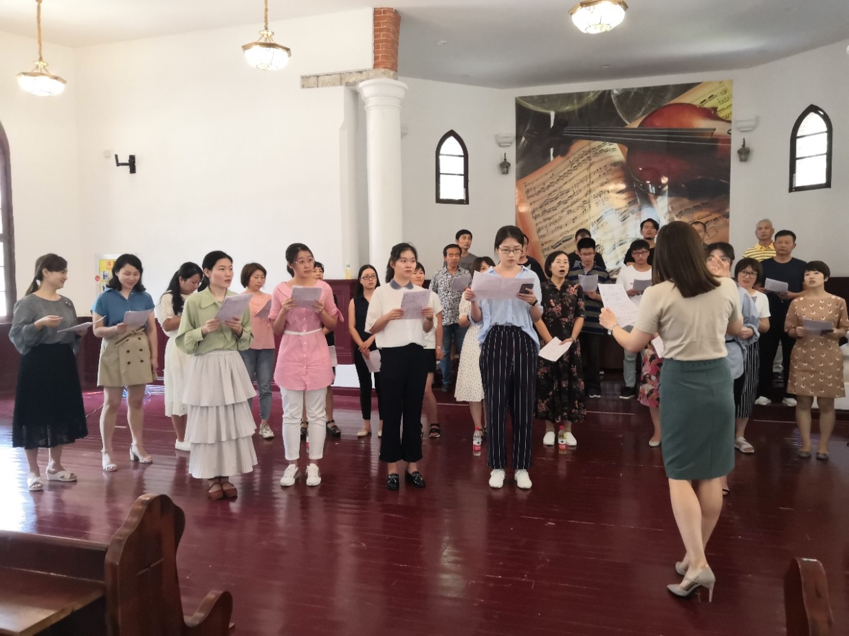 2019年9月11日上午12:20分,武汉四中教师合唱团于教堂进行了每周一次的合唱排练,全体实习生也积极参与其中,为迎接120周年校庆贡献自己的一份力量。