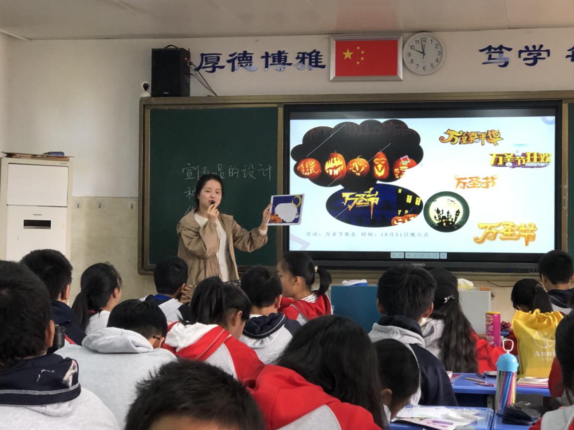 美术学院本科实习生黄颖泽的汇报课《宣传品的设计》,授课七年级4班。在课堂上,教师首先展示了一部宣传短片,以其独特的艺术风格,引入本次课程内容《宣传品的设计》,提出关于宣传品设计,以及应用方面的问题,让学生小组讨论。随后以较多的宣传品设计作范例,激发学生兴趣。通过让学生欣赏宣传品不同种类的作品,启发学生分析宣传牌设计的要点和内涵。为增加学习趣味性,继而设置情境,以万圣节舞会活动为主题,让学生讨论如何宣传能达到好的效果,鼓励学生带着兴趣和跃跃欲试的心情进行设计创作。课堂小结部分,黄同学以多媒体的先进优势,进行有趣的作业评价。