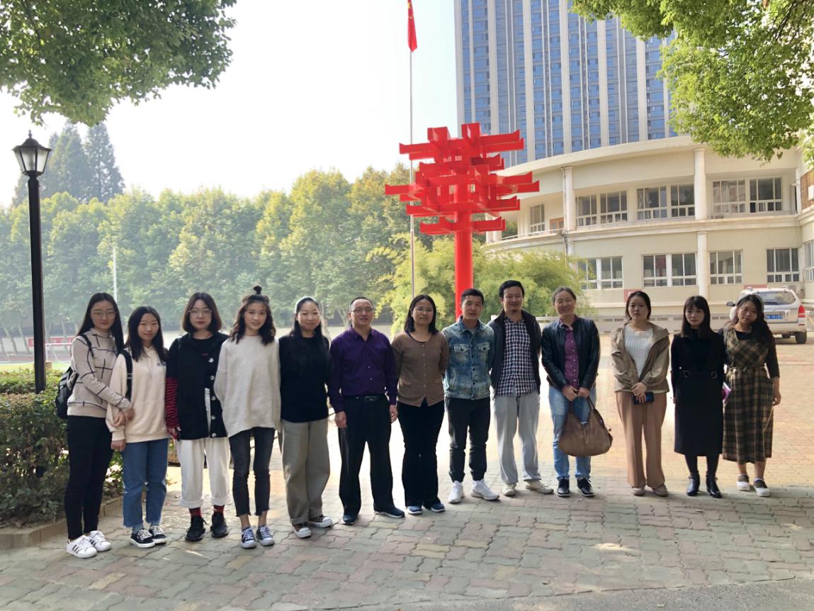 在华一初会议室进行的汇报课教研座谈中,华一初实习点华师美院实习组长程锦同学作了以《而今更笃凌云志,莫教冰鉴负初心》为主题的实习工作汇报, 包含“一步一步,永不停滞”、“精修细磨 成就好课”“感激之情 溢于言表”三个部分内容。她表达了华师美院学子们将会铭记各位老师们的重托与希冀,始终秉持着“求实创新,立德树人”的校训,争取在日后能够成为一名合格的人民教师。华中师范大学美术学院陈晓娟院长、高细媛副教授、汪楚雄副教授、徐谦老师在会议室对实习生们的实习成果给予了充分的肯定和赞扬,提出了宝贵建议,给予了对未来发展的殷切希望,同时对华一初实习点美术指导老师们的辛苦付出、细心栽培表示了最诚挚的谢意。最后,在华师一附中初中部美丽的校园里,阳光下,在学校地标“華”字雕塑前,师生合影留念。