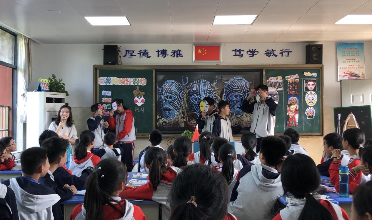上图:华师美院本科实习生程锦的汇报课《面具的设计制作》授课七年级9班实拍