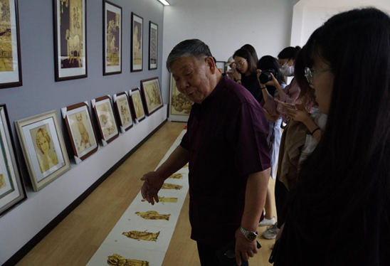 国家级传承人、国家工艺美术大师邓友谱老师向同学们展示和解读他的代表作《水浒传108将》