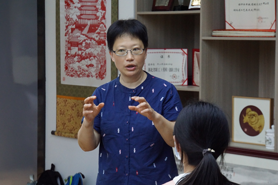 “湖北民间美术与手工制作”课程组教师杨杨、毛政良代表美术学院为传承基地举行授牌仪式