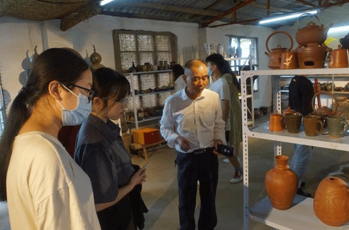 65日上午,由华中师范大学美术学院杨杨老师主讲的“湖北民间美术和手工制作”社会实践同时选修课程,在蕲春县管窑镇管窑老窑址所在的岚头矶工艺陶器厂内展开了2022春第4次社会实践教学活动。管窑老窑址是湖北三大名窑——汉川马口镇马口窑、蕲春管窑、麻城蔡家山窑中,唯一既有老窑口又有老窑工,老窑口还继续在烧窑的地方。蕲春管窑镇也是第一个与华中师范大学美术学院签订社会实践合作教学的挂牌单位,率先实现教育部关于社会实践课程“配备理论指导教师、具有稳定的实践基地等条件”的要求。