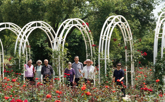 走过小桥后,有一园开得正盛的玫瑰花,老师们一起在亭中赏花,占小利主任代领导们表示了学院对退休老师们的关心,并仔细了解了大家的困难与需求,表示及时向领导们反映,请求解决。覃发高老师代表学院老协委员表示对学院此段时间的离退休工作表示认可,感谢学院领导对退休老师们的关心。王蕴芳老师等纷纷表示对学院建设的关心,表示对于美术学院的未来充满期待。