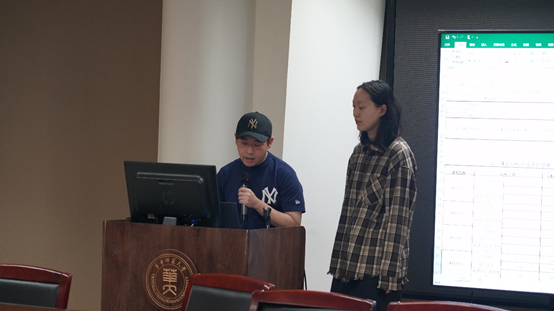 刘佳艺老师和杨宇锋老师讲解非师范课程需要完成的《课程目标达成情况报告》模板,及模版如何填写的说明与示范。