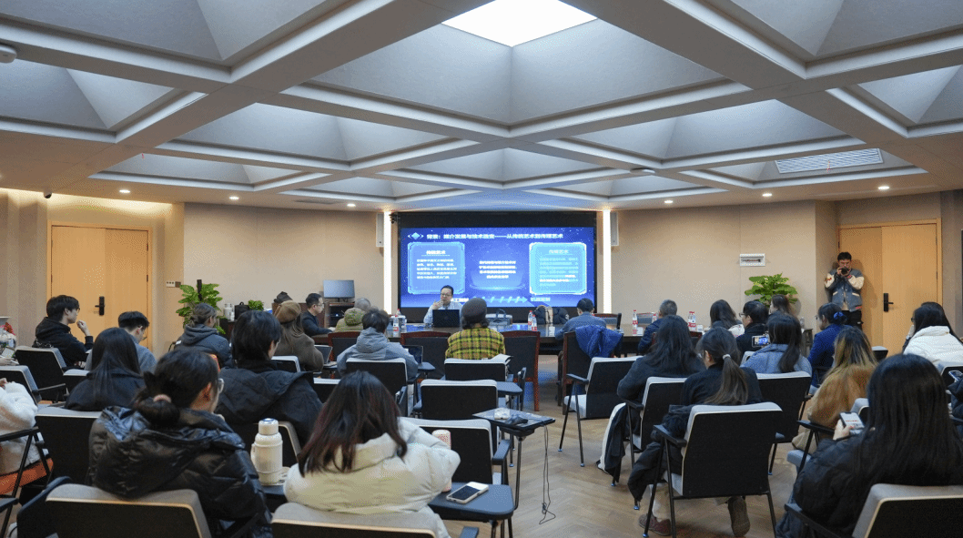 在讲座的交流探讨环节,华中师范大学美术学院院长郑达教授主持了与会师生的讨论。郑达教授就此次讲座的收获与体会进行了总结,并结合个人的专业领域,探讨了传媒艺术的新体验及其引领性作用,以及传媒艺术的主体性问题及其新思考。之后,学院师生围绕中国传统艺术的现代转化、传媒艺术的评价标准与体系、AI融入课堂教学与学术研究的尺度等问题与胡智锋教授进行了深入的探讨与交流。