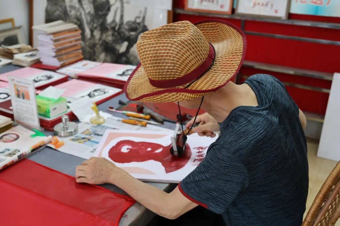 上午10点,团队抵达叶坪革命旧址群,第一时间就来到“红都艺术馆”。在这里,他们见到了本次行程的关键人物——红色非遗(苏区版画)传承人严恩浩先生。