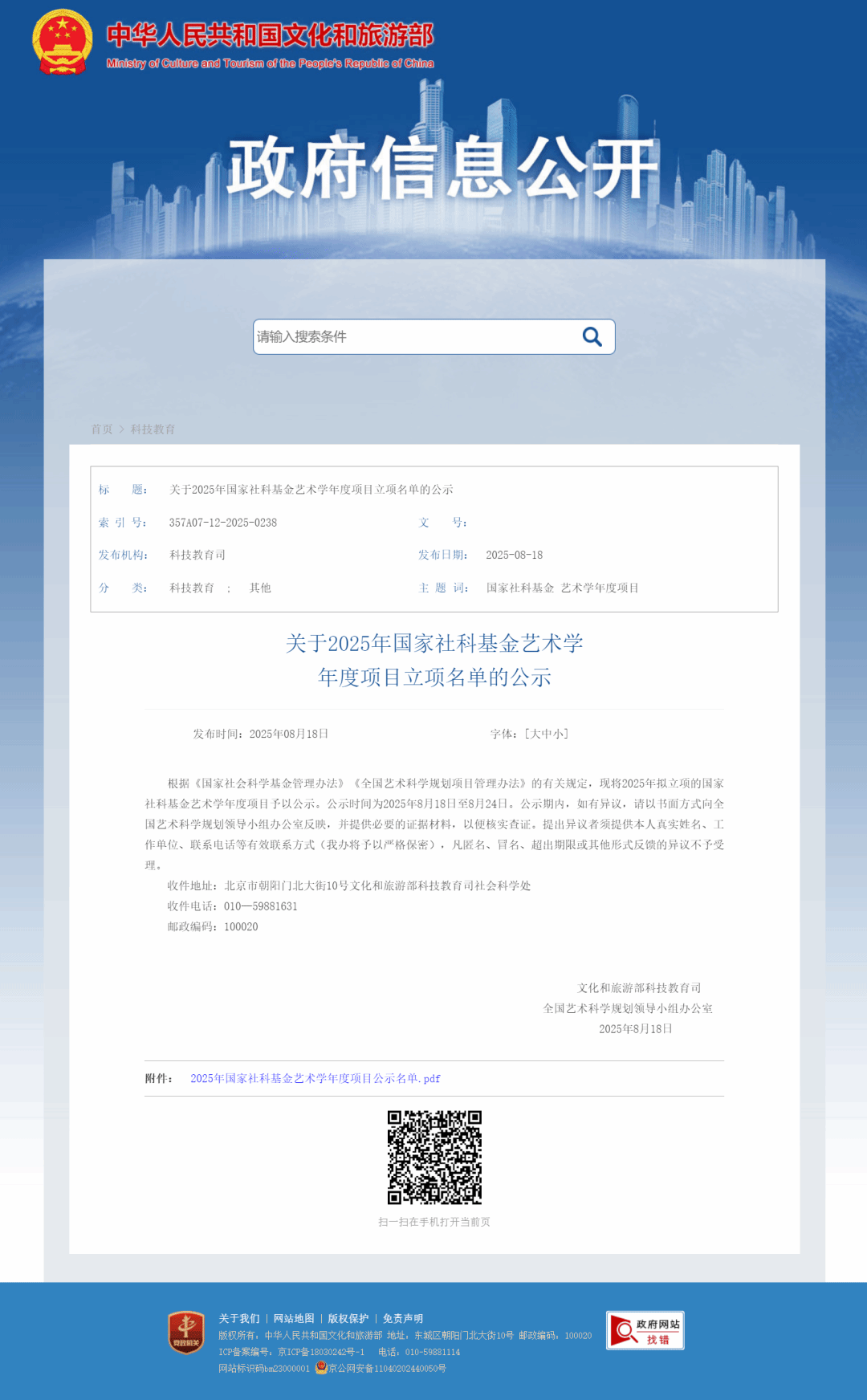 此次成功立项,标志着我院科研工作在国家级项目层面取得持续性进展。未来,学院将持续深化“艺术×科技”研究方向,努力产出更多具有原创性和标志性的科研成果,积极响应国家战略需求,展现学院在新时代艺术学研究中的学术担当与社会贡献。