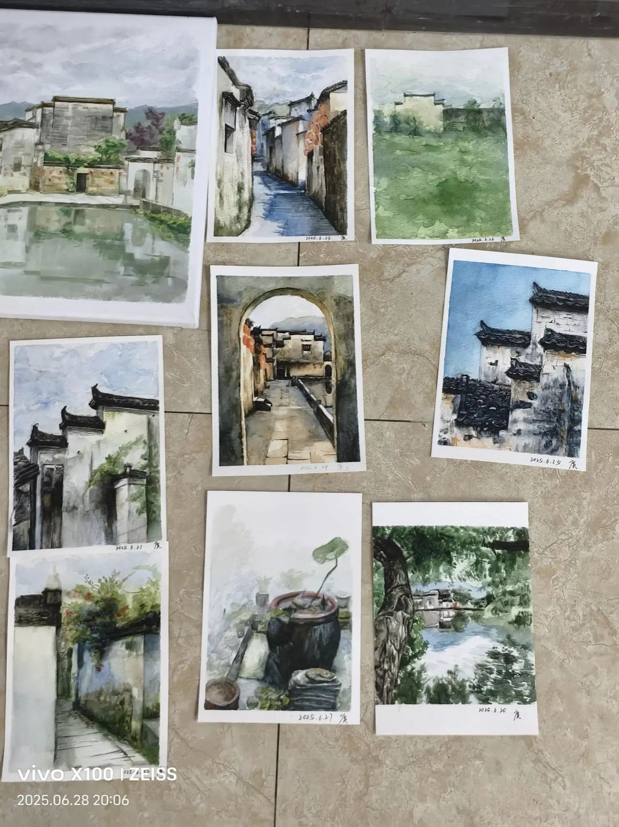6月19日至29日,华中师范大学美术学院绘画专业师生赴安徽宏村开展为期十一天的写生考察。本次考察以"安全第一、专业为本"为原则,在实地写生与文化调研中拓展艺术视野、深化创作理解。考察团队累计完成写生作品160余幅,实现了"带着问题出发,带着问题出发,带着成果回归"的教学目标。